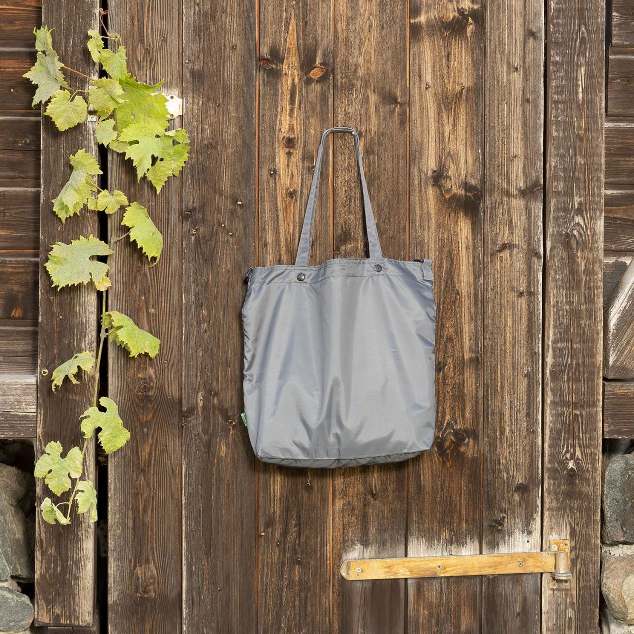 Geanta de cumparaturi a fost realizata din poliester care nu a fost prelucrat in mod conventional cu petrol brut, ci din sticle PET reciclate. Reciclarea sticlelor de plastic vechi nu numai ca reduce deseurile, ci si economiseste resursele fosile. Geanta a fost fabricata integral din 2 sticle PET reciclate (de capacitate 0,5l).