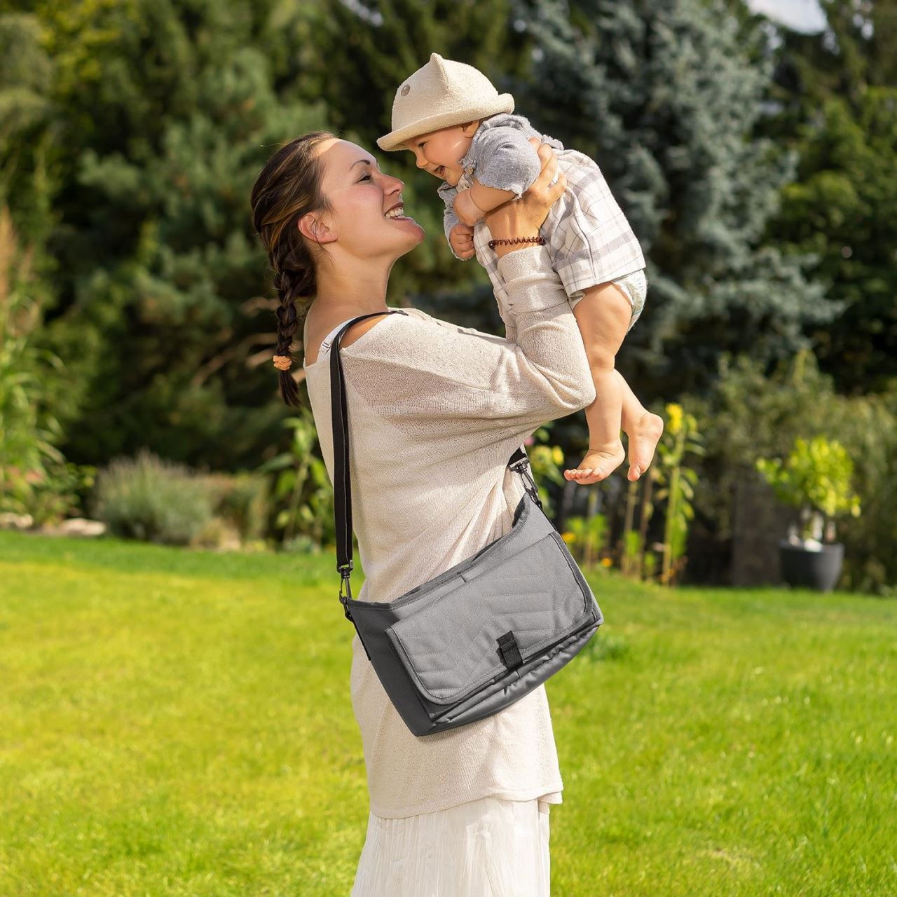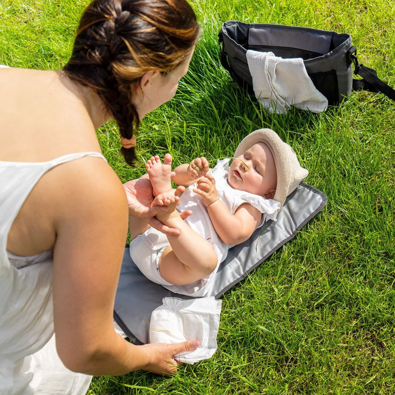 Geanta multifunctionala 2in1, cu aleza pentru schimbat scutecul bebelusului, din plastic reciclat, Reer Growing Organiser Bag 84071