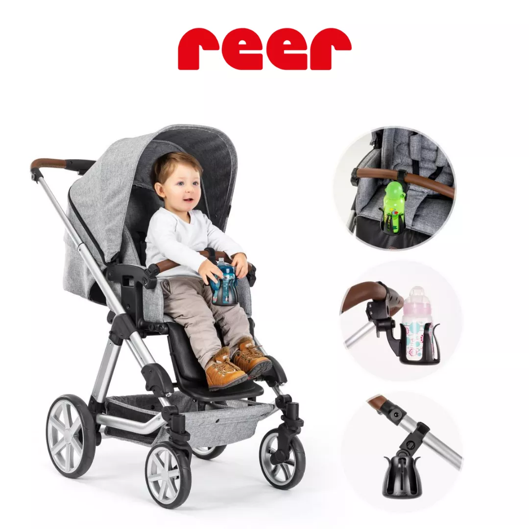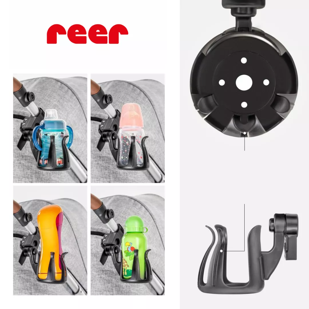 Suportul de sticle are un sistemu Clip&Go de la Reer permite scoaterea si atasarea foarte simpla a suportului pentru sticle fara a fi necesara demontarea sistemului de fixare de pe carucior.