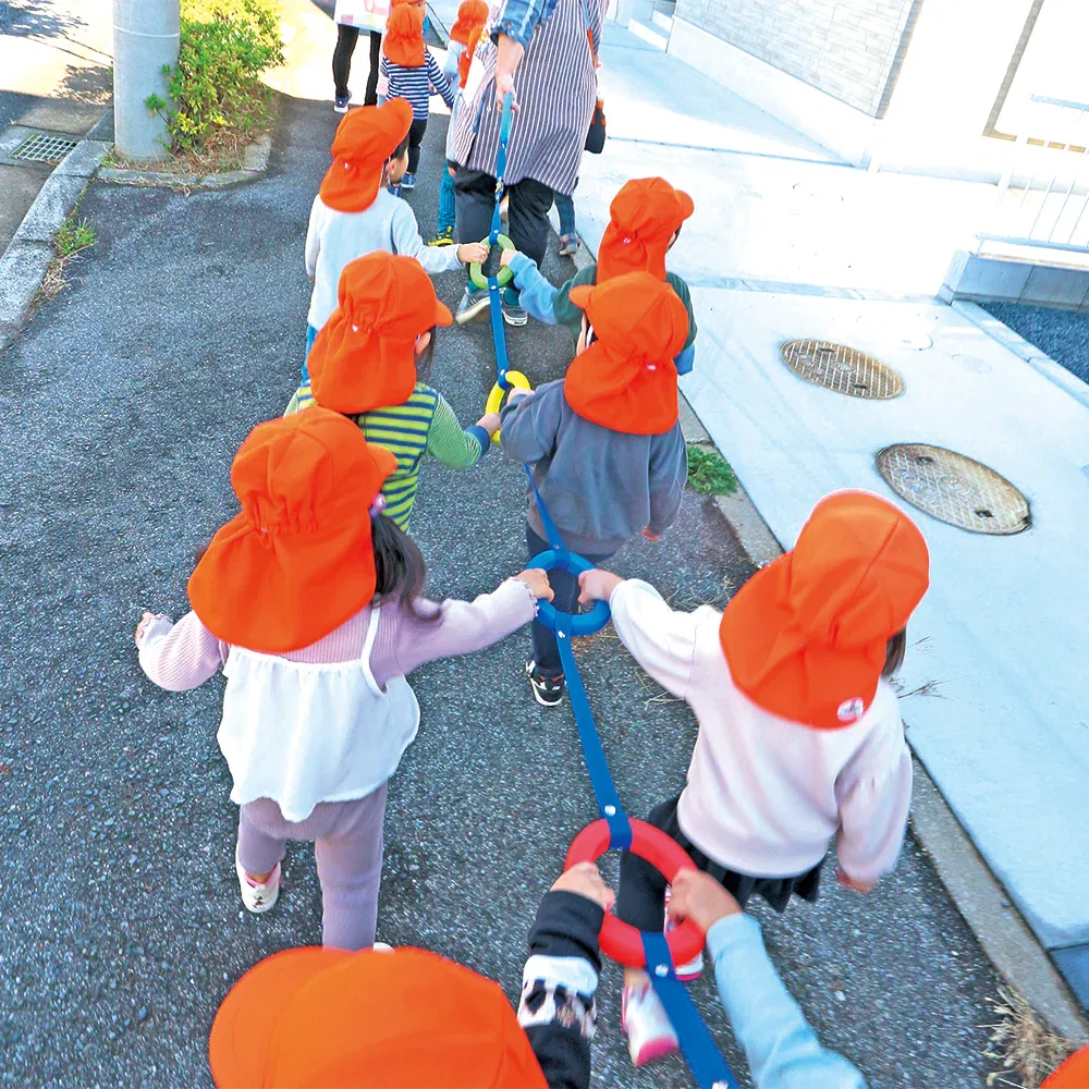 Franghia de mers cu inele ajuta la imbunatatirea sigurantei in orice grup de pana la 8 copii.