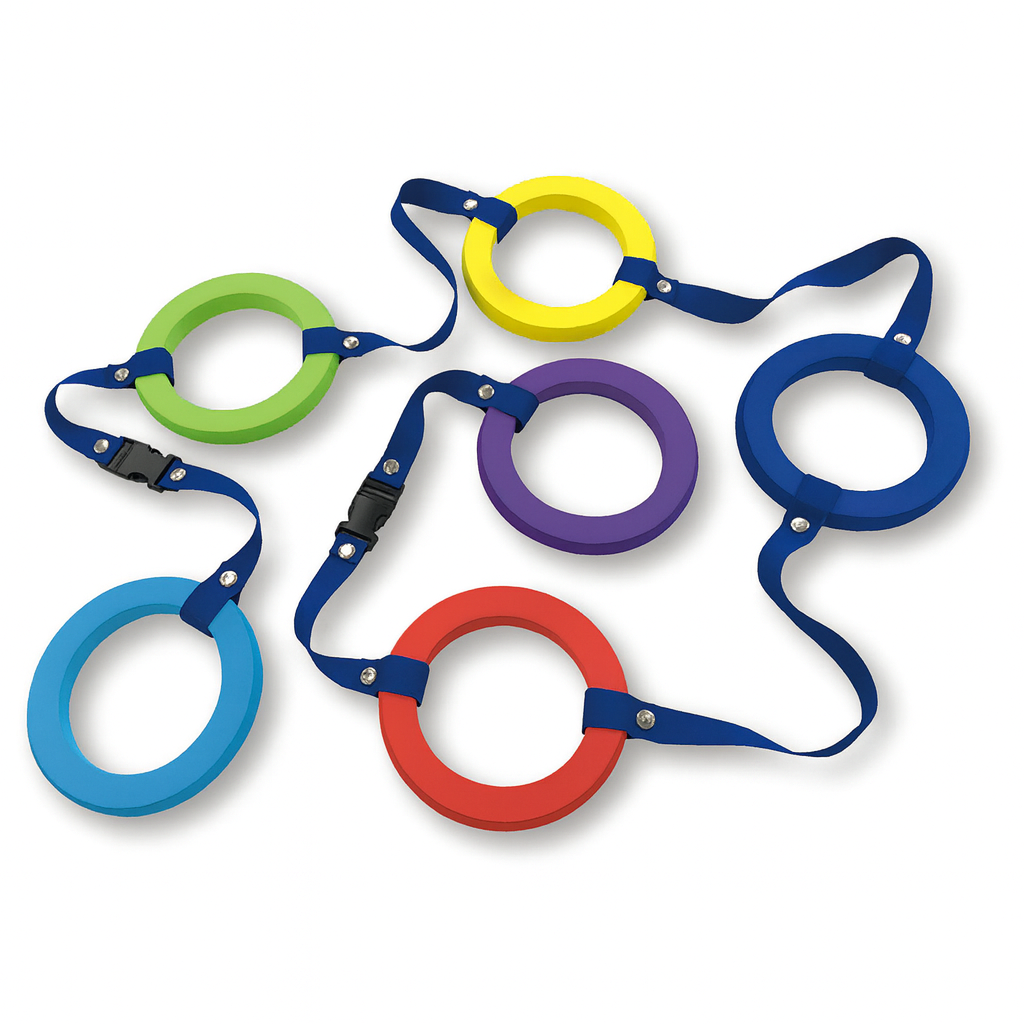 6 inele colorate, care permit atașarea a 10 persoane simultan. Mânerele au culori diferite și sunt ușor de apucat de mânuțele celor mici.