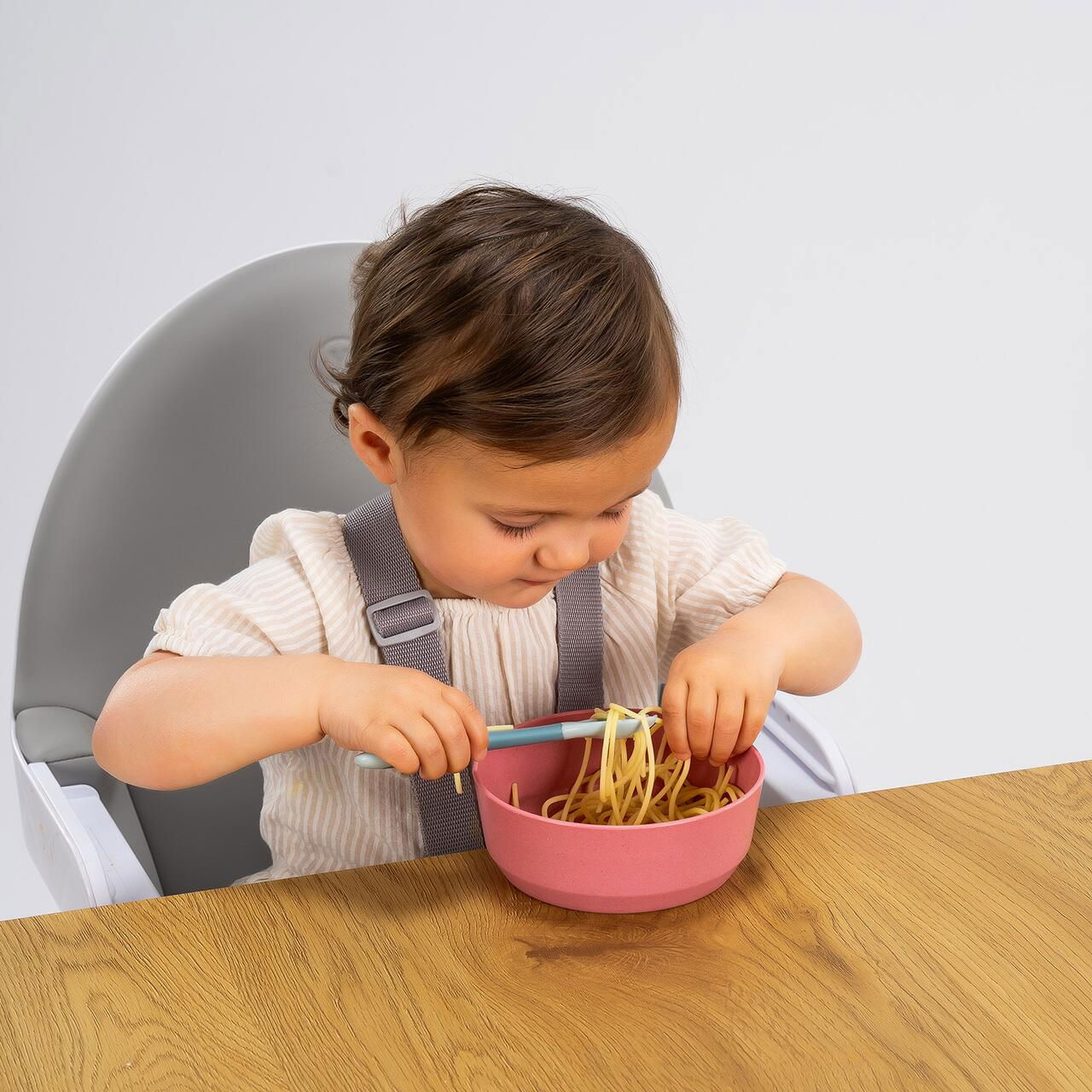 Aceste tacamuri flexibile 360° ii ajuta pe cei mici sa aiba experiente placute la masa si sa poata manca singuri. Flexibilitatea tacamurilor permite ajustarea unghiului de intoarcere a capatului, in functie de nevoile manutei infometate. Flexibilitatea materialului usureaza experienta noua de a lua masa independent atat pentru stangaci, cat si pentru dreptaci.
