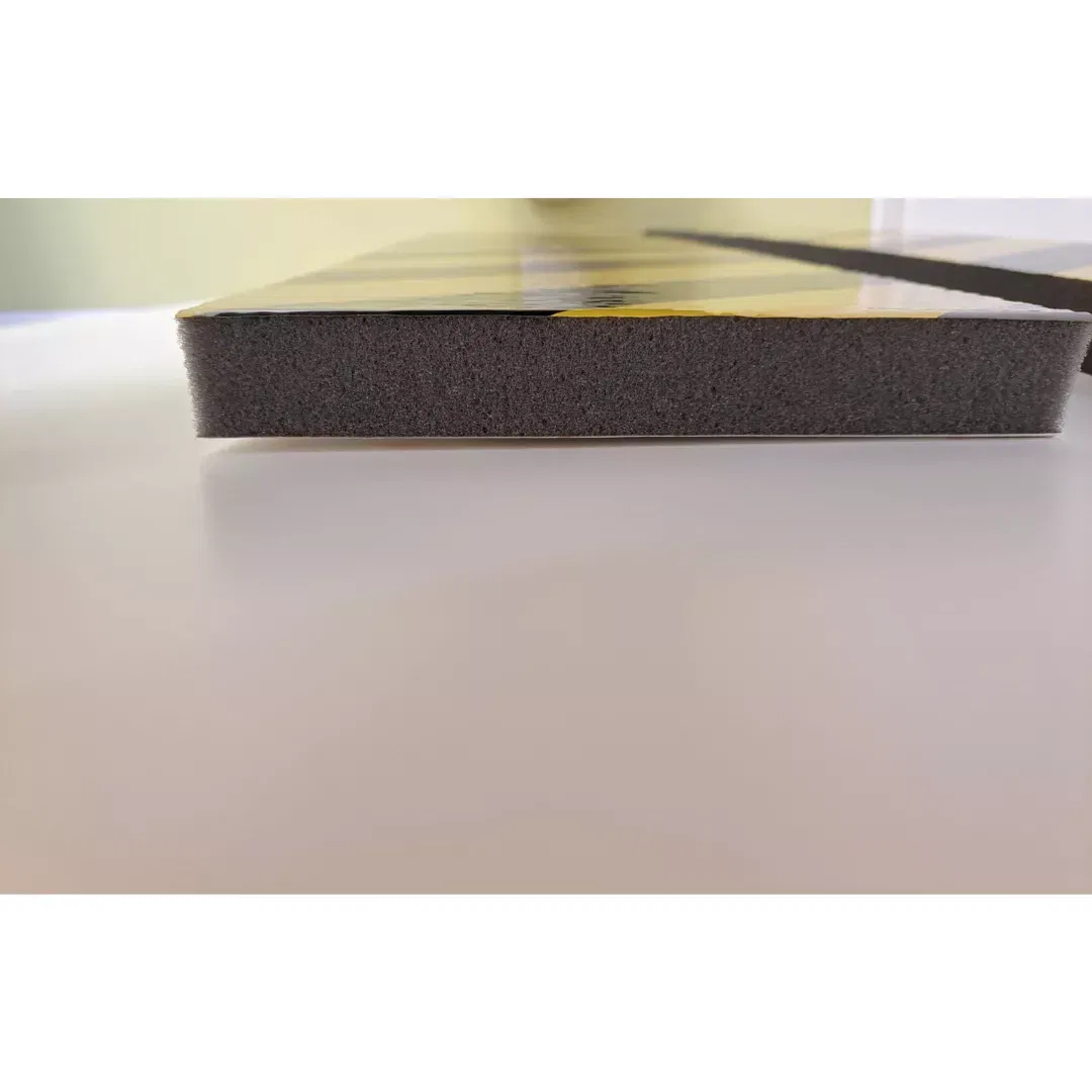 Banda de burete este realizată din material de bază din spumă EVA, are rezistență la apă, structură cu celule închise, rezistență la umiditate, anti-vibrații: rezistență ridicată și rezistență la tracțiune, duritate ridicată și rezistență bună la șocuri.