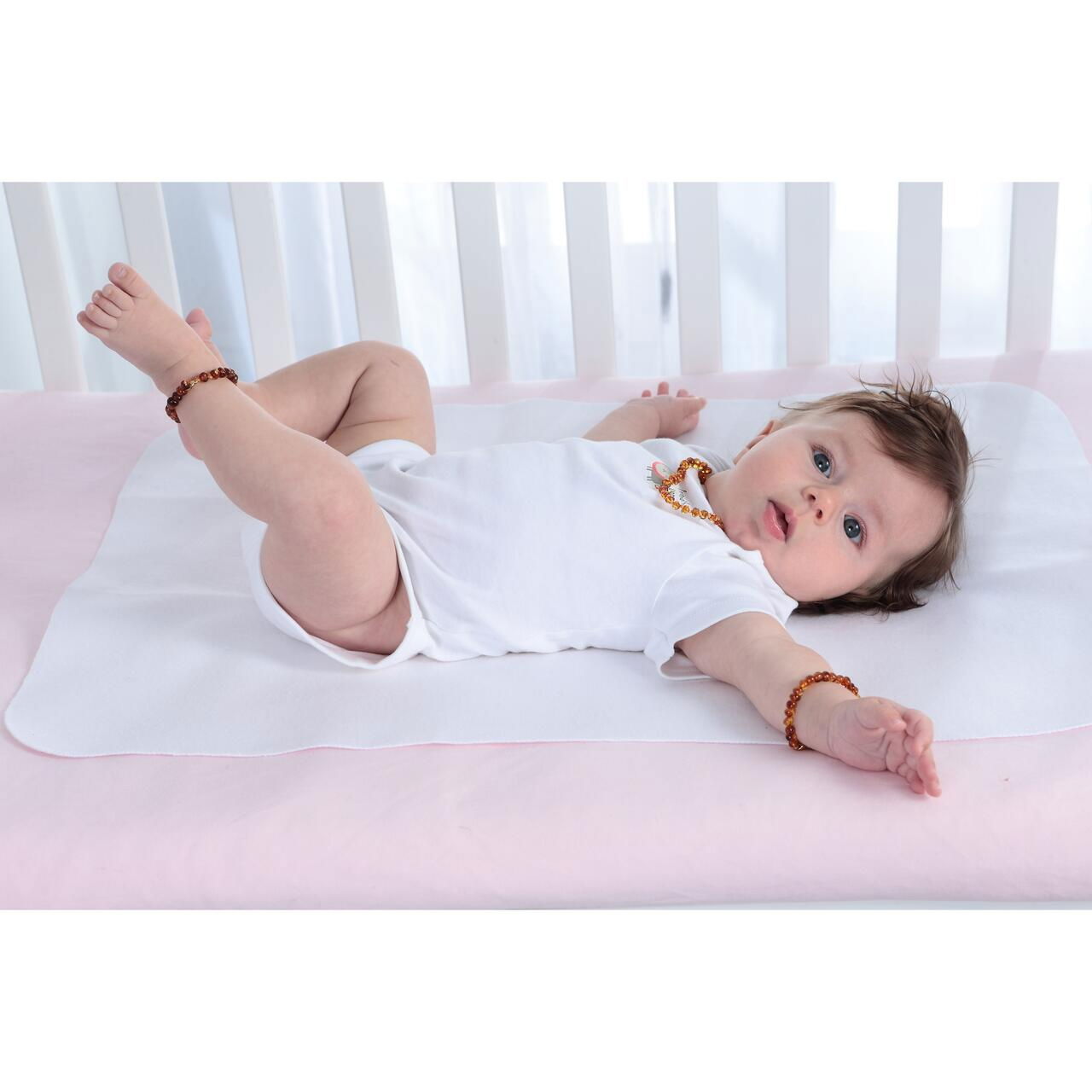 Datorita suprafetei din bumbac 100% pe ambele parti, aceasta protectie pentru saltea este foarte absorbanta, moale si blanda cu pielea sensibila a copilului. Stratul din mijloc reprezinta o bariera sigura impotriva umezelii, fiind impermeabila la apa si urina. Protectia pentru saltea previne umezirea sau patarea suprafetelor, fie ca este vorba de pat, masa de infasat, bancheta masinii sau alta suprafata pe care aveti nevoie sa schimbati bebelusul.
