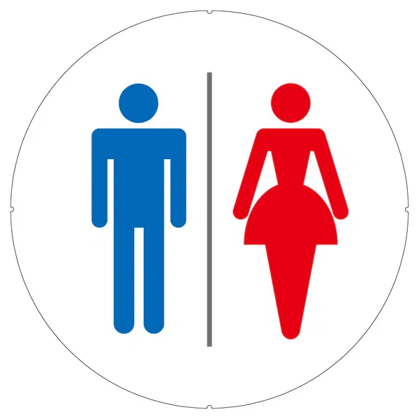 Semn toaletă autoadeziv, femei-bărbați, 256mm, ideal pentru uși și pereți, ușor de aplicat și rezistent. Accesibil, durabil, cu pictograme clare și vizibile pentru identificarea rapidă a toaletelor. Perfect pentru clădiri de birouri, restaurante, hoteluri și alte spații publice.