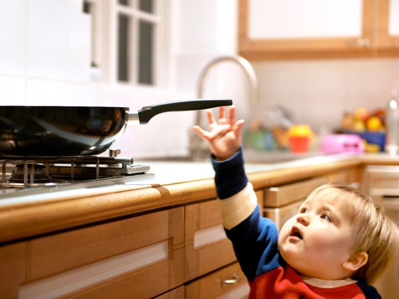 - Nu lăsa copilul să se joace în zona în care se află aragazul, cu atât mai mult dacă este aprins și se află și o oală cu conținut fierbinte;