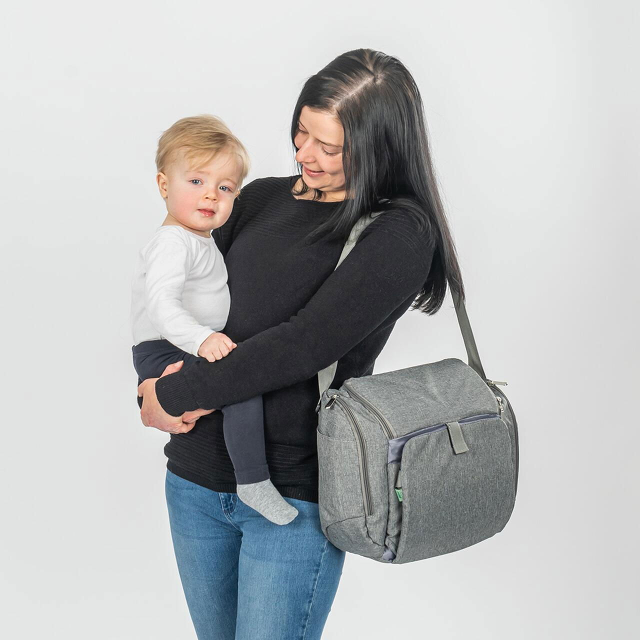 Deasemenea, inaltatorul poate fi atasat de carucior, astfel incat sa nu fie nevoie sa fie neaparat transportat pe umar. Atasarea flexibila de carucior se face simplu cu ajutorul celor doua carabine Clip&Go atasate.