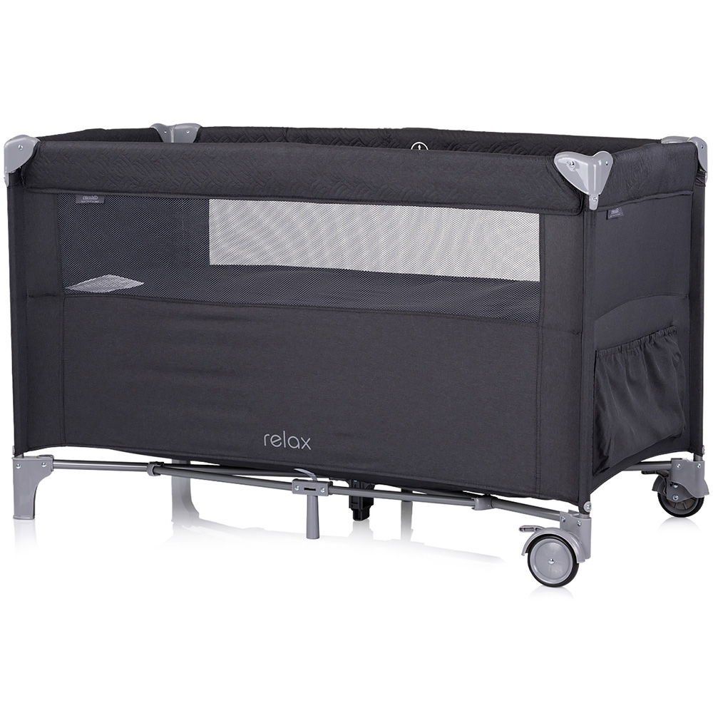 Patut pliabil Chipolino Relax anthracite linen cu laterala culisanta