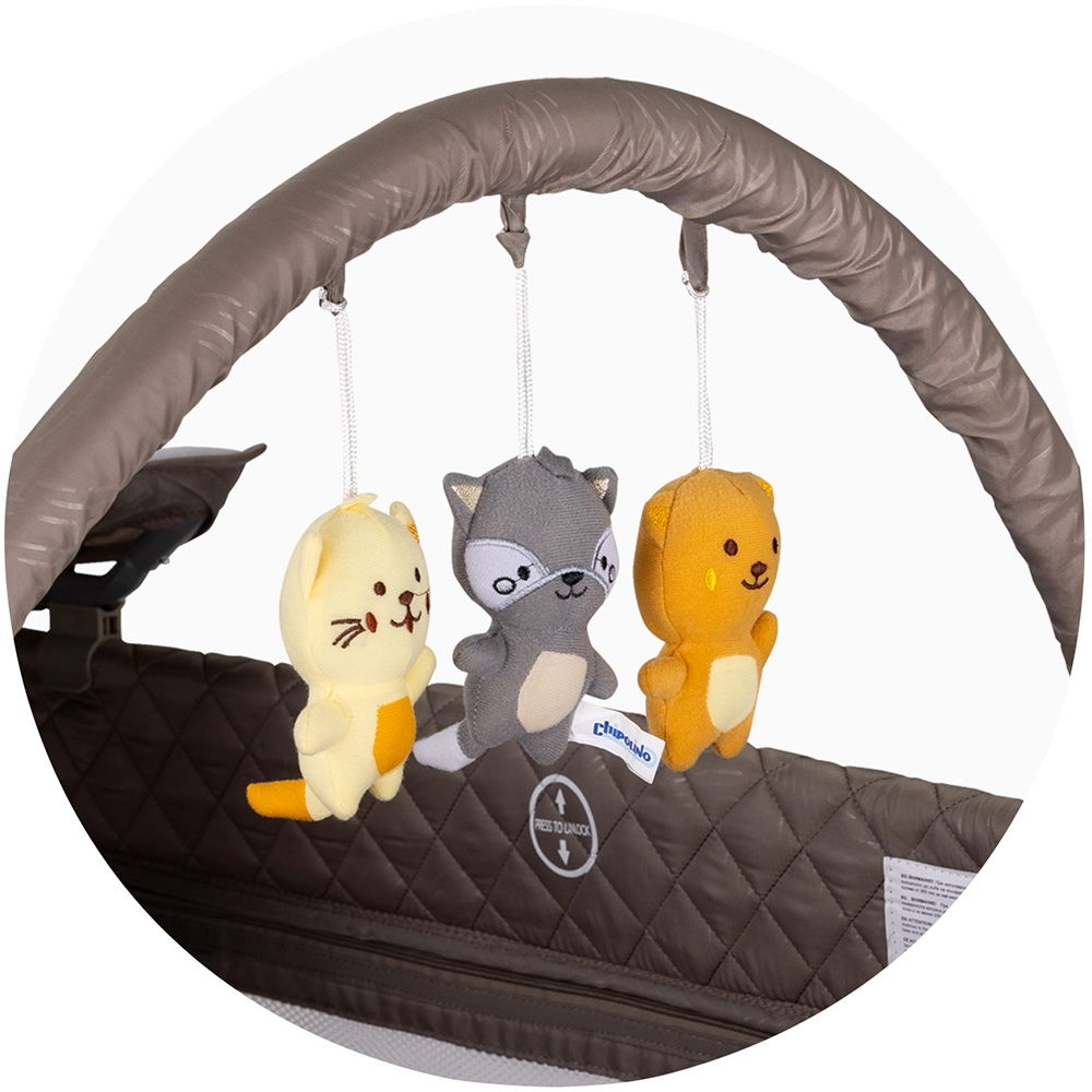 • Bara de jucarii cu trei jucarii de plus pentru a distra copilul