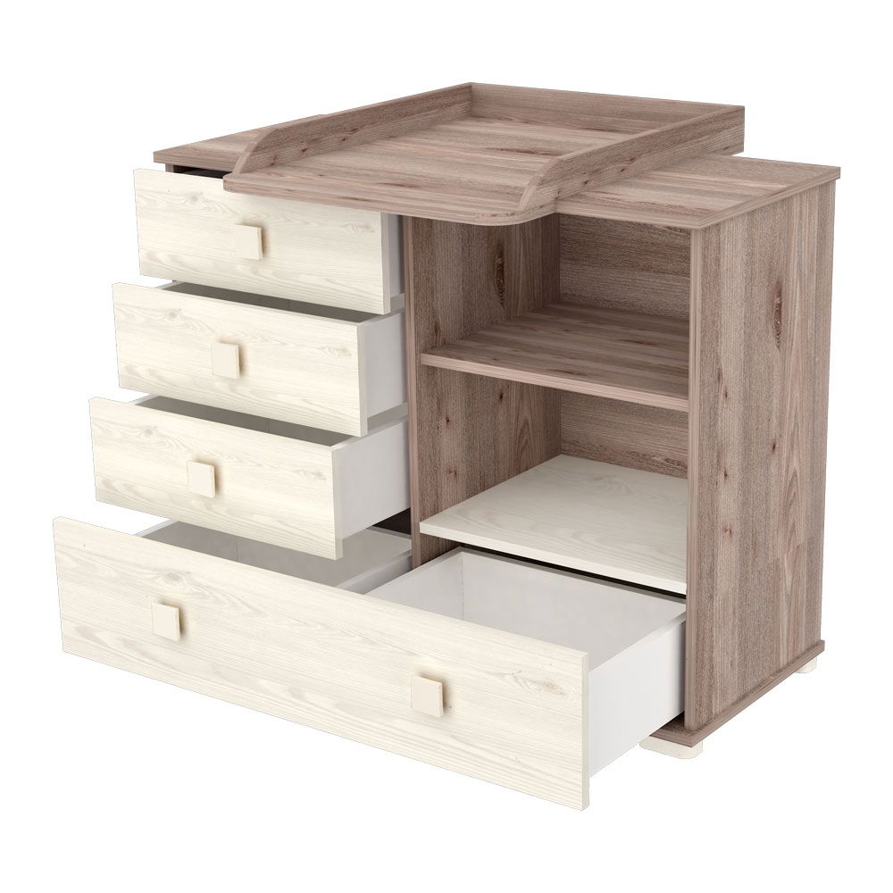 - Este un model multifunctional: in cazul in care nu e folosit pentru infasarea bebelusului, poate functiona ca o comoda normala in camera copilului sau in orice alta parte a casei, doar prin indepartarea blatului pentru infasat