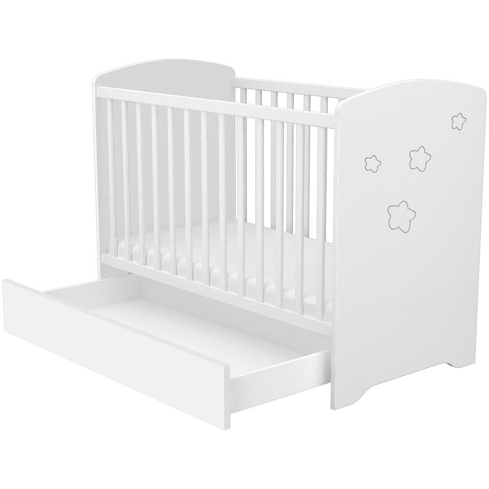 Patut copii din lemn cu sertar Hubners Matei 120x60 cm alb cu stelute