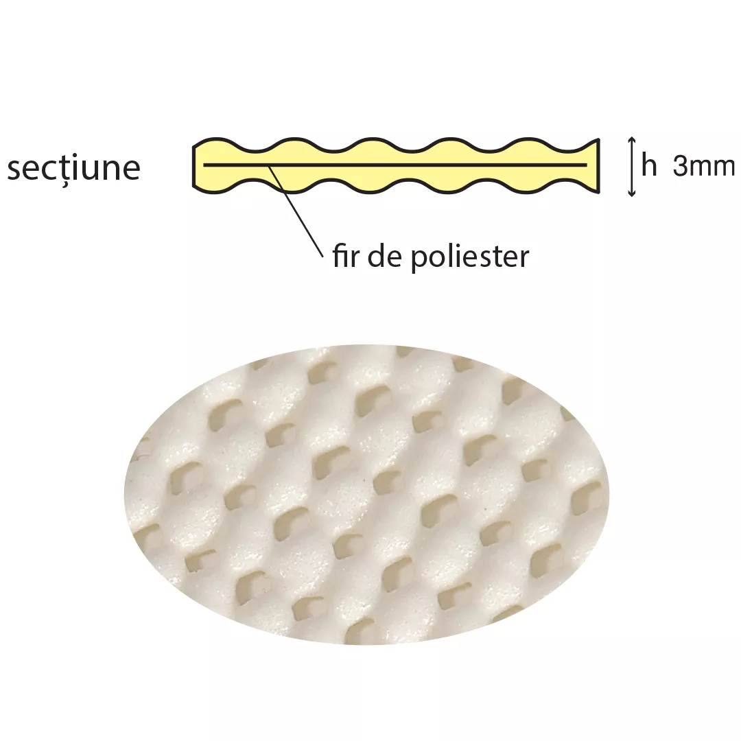 Mega carpeta antialunecare universala alba este disponibila la rolă cu lăţime de 90cm şi o lungime de 30m.