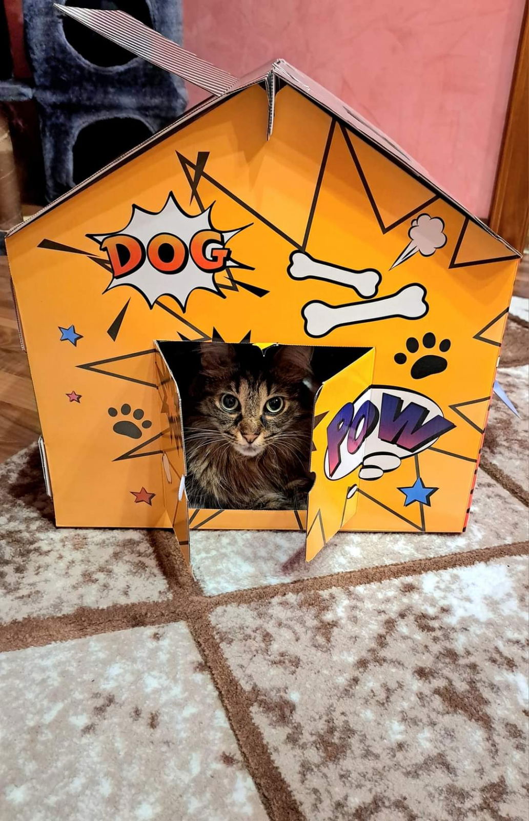 Motănelul nostru adoră casuta, doarme și se joaca în ea. Este foarte ușor de asamblat.