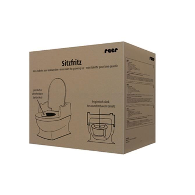 Cu un design ergonomic si sigur, igienica si simplu de curatat datorita olitei detasabile, minitoaleta Sitzfritz de la Reer este foarte confortabil de folosit pentru copii, incepand cu varsta de 18 luni. Dimensiunile minitoaletei au fost perfect adaptate la inaltimea unui copil mic. Manerele de sprijin robuste ofera siguranta suplimentara garantata chiar si pentru cel mai mic copil care o folosește. Suprafața de contact foarte mare asigura ca minitoaleta este intotdeauna stabila, fara sa se incline sau sa se rastoarne. Toaleta pentru copii are o olita interioara care poate fi scoasa prin partea din spate. Acest lucru permite golirea igienica. Manerele scaunului si baza de sustinere nu intra in contact cu continutul olitei.