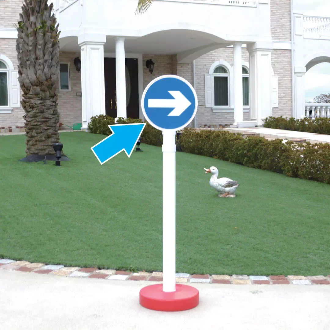Suportul de indicatoare poate fi montat pe stalpii de delimitare comercializati de noi sau pe alti stalpi de plastic cu diametru de 63-64mm.
