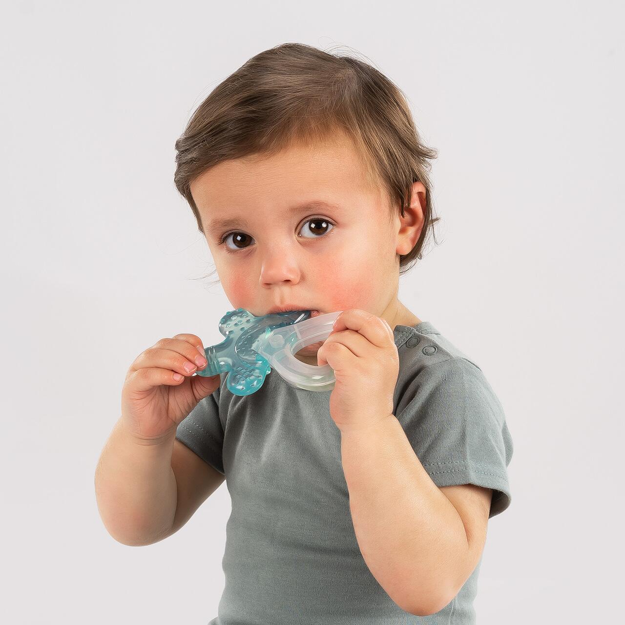 Atunci cand primii dintisori incep sa erupa, este importanta atat diminuarea durerii, cat si sustinerea dezvoltarii sanatoase a danturii. Un inel pentru dentitie il poate ajuta pe bebelusul tau. Mancarimea si durerea gingivala vor fi calmate prin roaderea acestui inel sigur pentru dentitie. Dupa ce a fost racit o perioada in frigider, elementele umpute cu apa elibereaza racoare pentru o perioada lunga de timp, astfel incat sa aline durerea cauzata de cresterea dintisorilor.