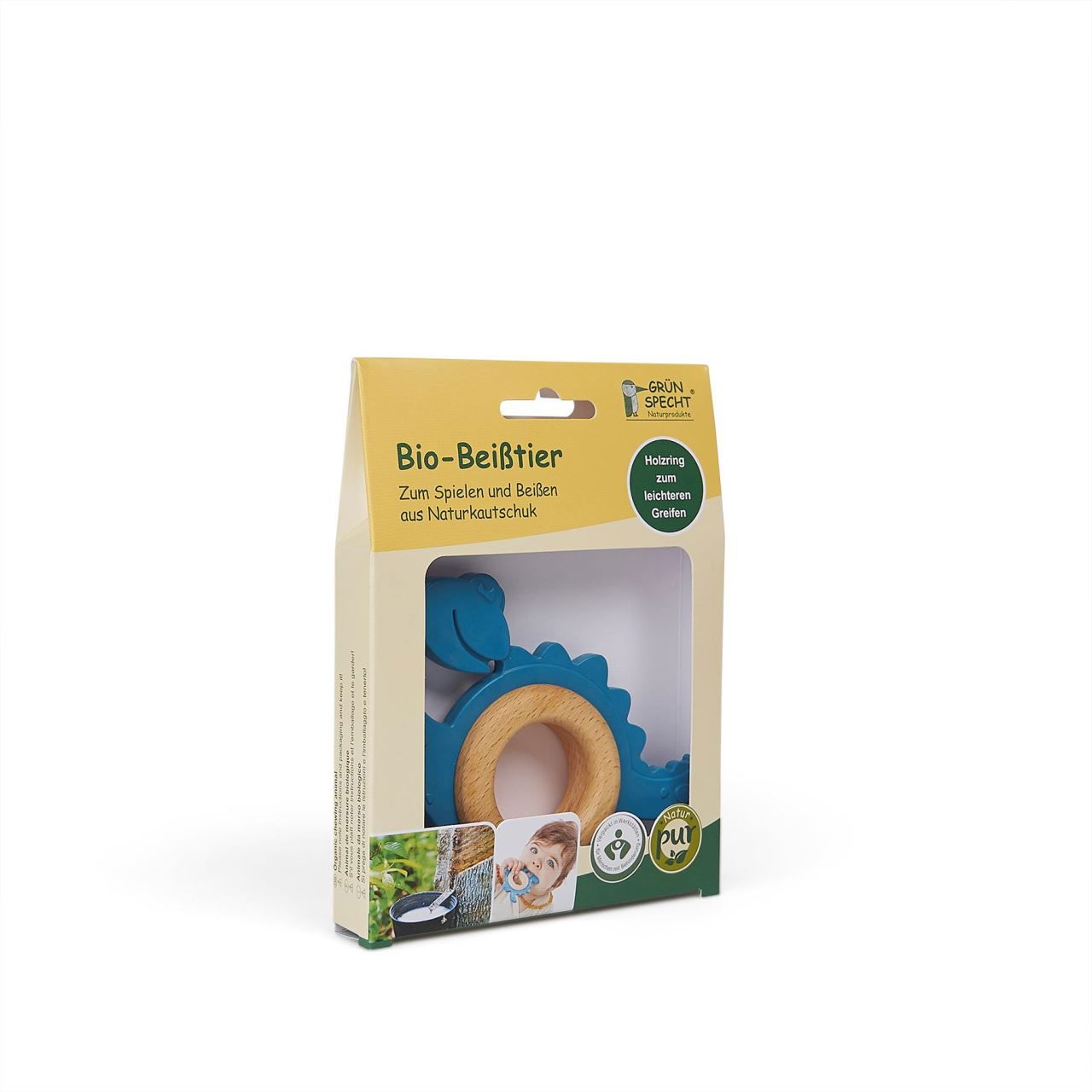 Jucarie organica pentru dentitie, din lemn si cauciuc natural, Dinozaur, Gruenspecht 688-00