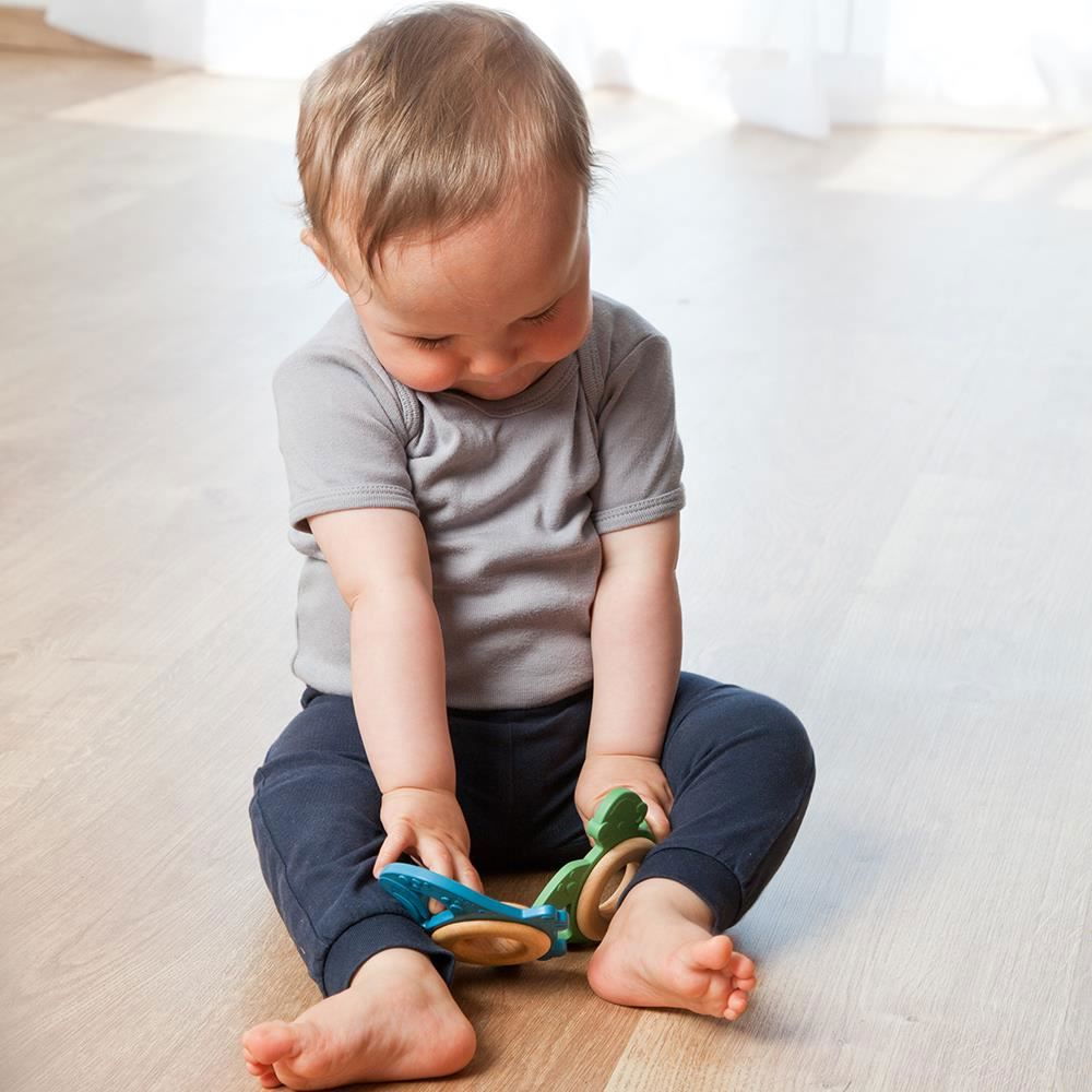 Bebelusii descopera lumea cu gura, mainile si ochii. Forma naturala a jucariilor noastre starneste curiozitatea celor mici si invita mainile bebelusului sa exploreze. In acest fel, pot lua contact in mod jucaus si avea primele experiente cu diferite forme și structuri, iar simtul tactil si prinderea sunt antrenate pe parcurs.