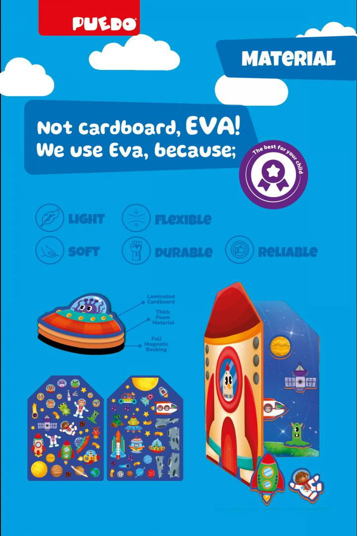 Fiecare obiect magnetic este acoperit cu spuma eva de 4 mm grosime. Cu această structură, obiectele ajung mai ușor in mâna copilului și le poate muta după cum dorește.