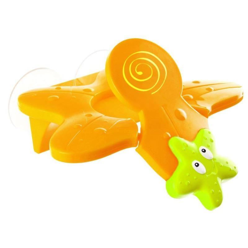 - Pentru a adauga un plus de distractie, fixati catapulta cu ajutorul celor 2 ventuze atasate, plasati o jucarie de baie pe partea superioara a catapultei, apasati cu un deget pe Steluta de mare si urmariti cum Pestisorul zboara prin aer