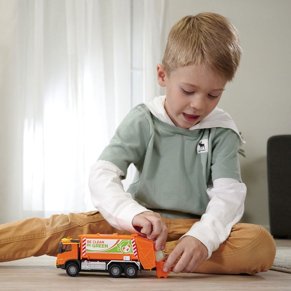 Detalii Masina de gunoi Majorette Volvo Garbge Collector cu tomberon