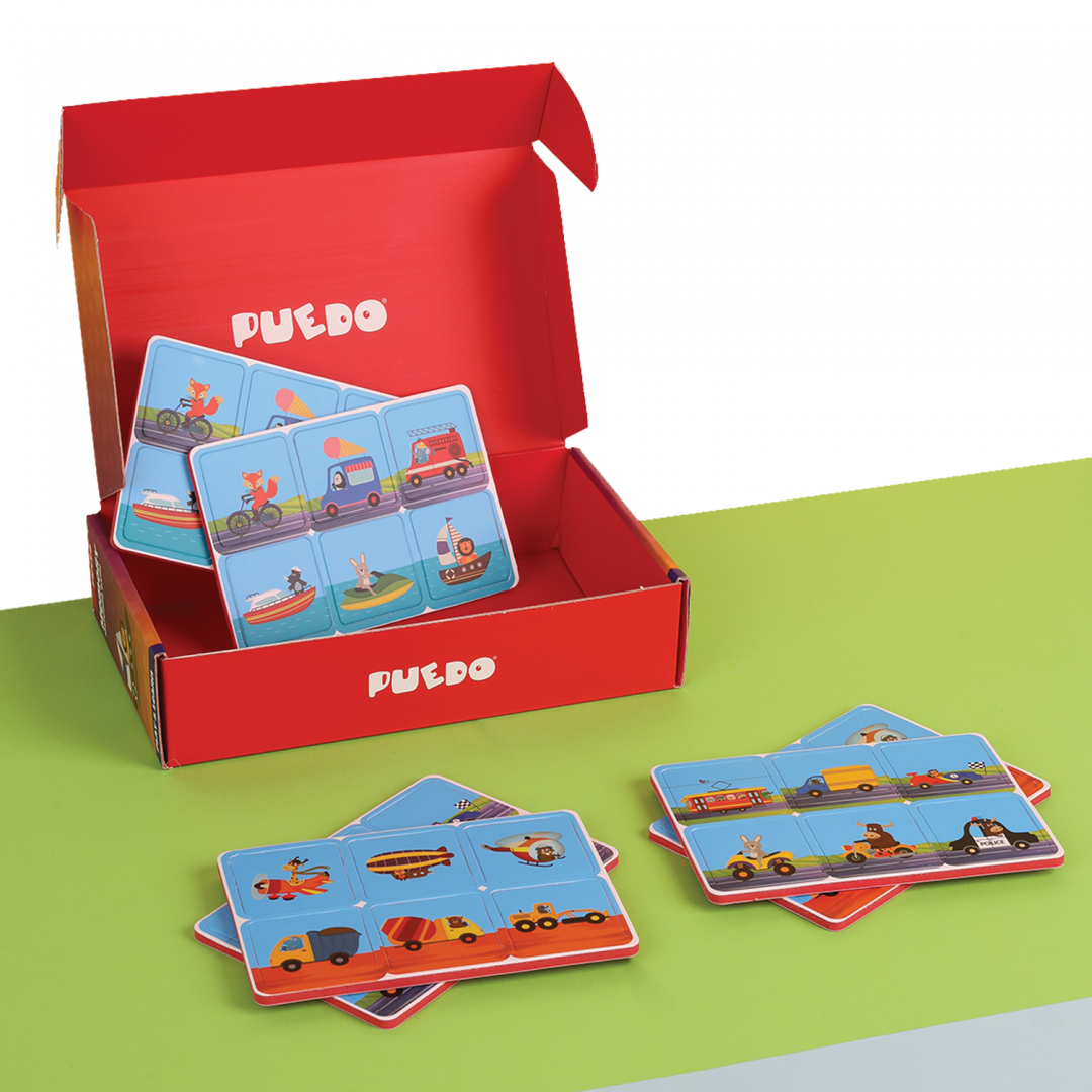 Puzzle-ul contine 48 de piese cu 24 de imagini diferite, printate pe un material moale. Este un joc dedicat dezvoltarii perceptiei vizuale si a abilitatilor de memorare, prin diferentierea pieselor similare de cele diferite.