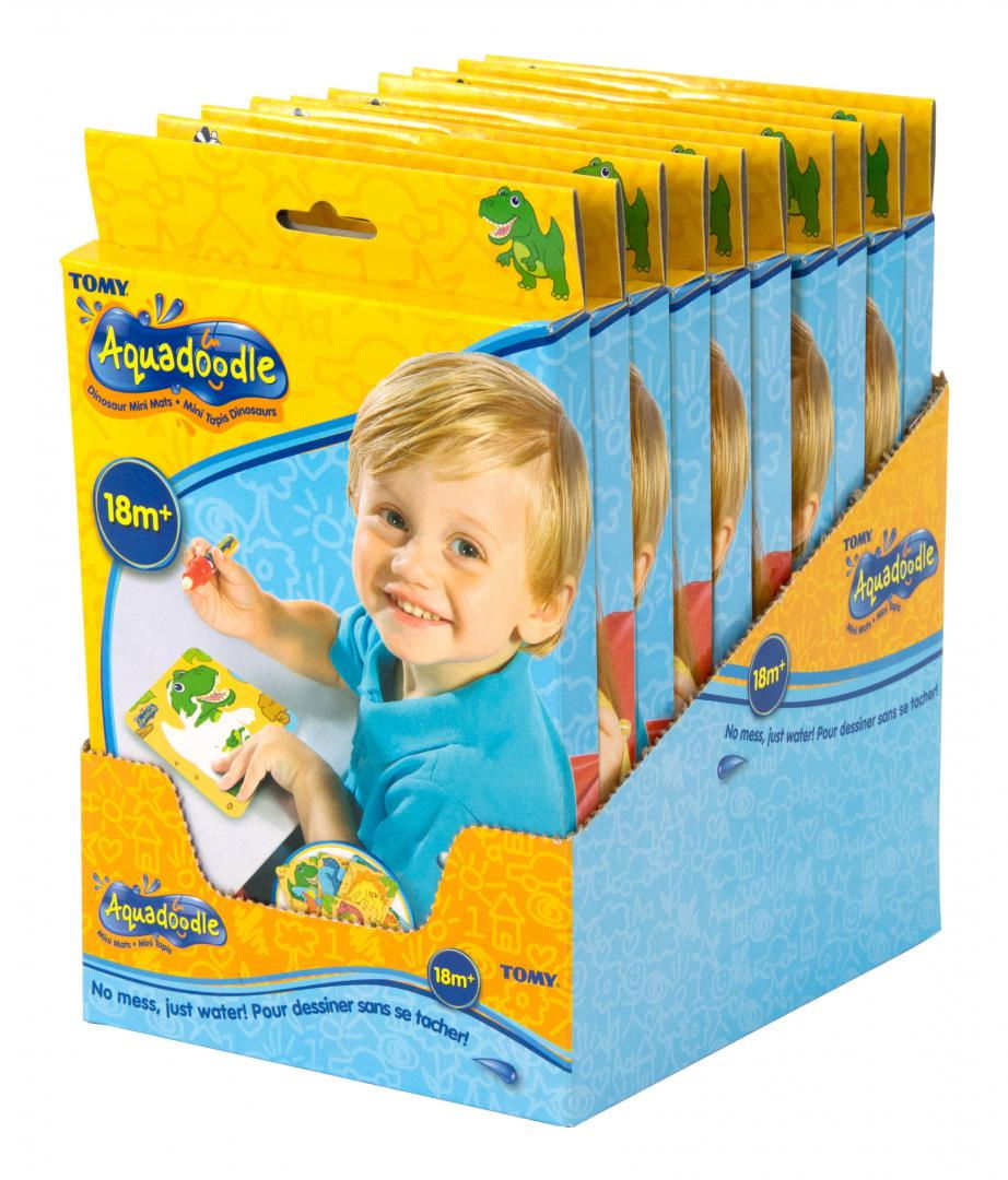 Cu aceste mini covorașe Zoo și Dino, chiar poți lua Aquaoodle oriunde pentru distracție creativă fără mizerie. Folosiți stiloul umplut cu apă Aquaoodle pentru a dezvălui imaginea de pe covorașul mini. Pune toate cărțile împreună pentru a crea o scenă.n