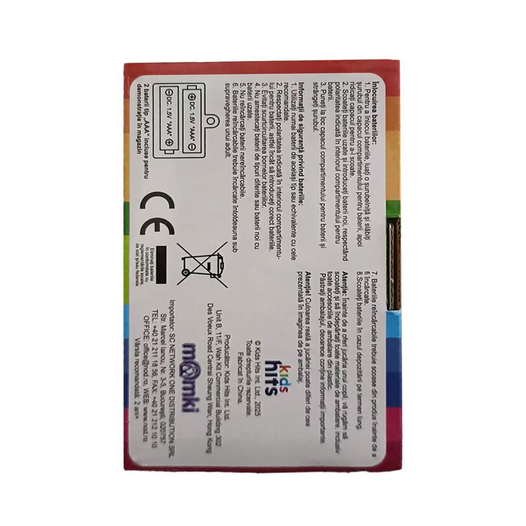 Jucăria funcționează cu 2 baterii de tipul ''AAA'' incluse.
