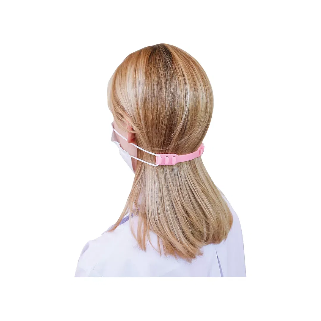 Banda este reglabila, are cârlige mici pentru a ține banda elastică a unei măști eliminand astfel durerea sau disconfortul generat de prinderea benzii elastice de urechi.
