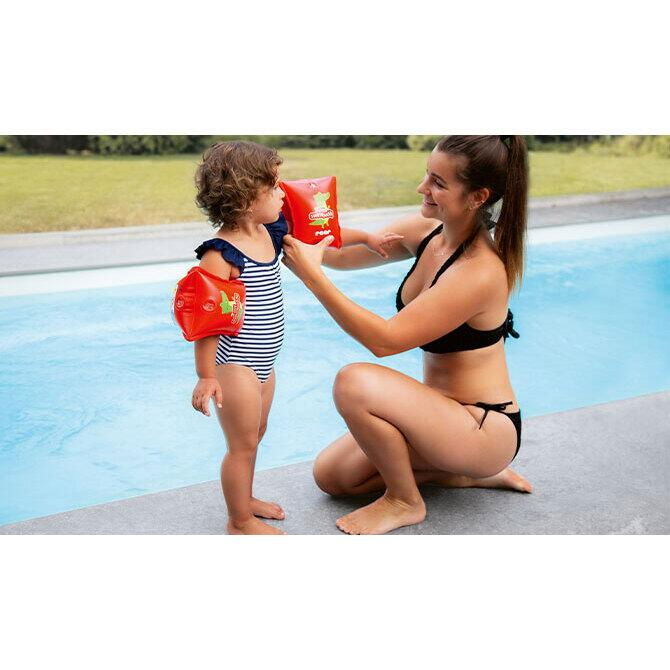 Fabricate din PVC foarte gros (0,3 mm) si completate cu o insertie de material realizata din 98% poliester și 2% elastan, aceste ajutoare pentru flotabilitate ofera durabilitate si siguranta exceptionale. Culoarea rosu stralucitor nu numai ca creeaza un aspect atragator, dar creste si vizibilitatea in apa. Crocodilul simpatic imprimat se anunta a fi prietenul de nadejde al micului inotator.