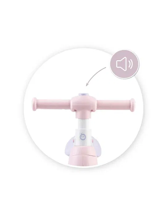 Funcția de baloane de săpun, activată printr-un singur buton, este o noutate absolută pentru acest tip de jucărie și cucerește imediat copiii. Totodată, luminile multicolore și claxonul amplifică experiența, iar părinții se bucură de faptul că ghidonul este reglabil pe înălțime, iar roțile sunt sigure pentru podea.