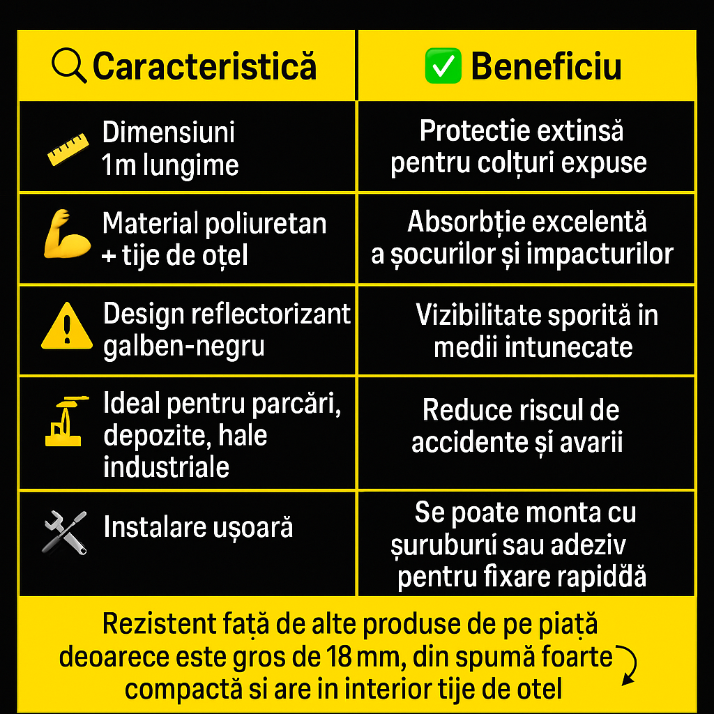 Într-o parcare subterană aglomerată, un șofer manevrează greșit și lovește colțul unei clădiri. Costuri mari de reparație, timp pierdut și disconfort. Sau într-un depozit, un motostivuitor se apropie prea mult de un perete, deteriorând structura. Aceste incidente pot fi prevenite cu un colțar de protecție reflectorizant, vizibil, testat și amortizant.