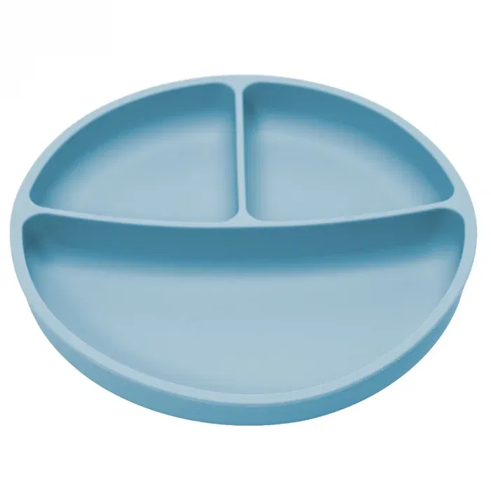 Farfurie compartimentată din silicon cu ventuză AppeKids Aqua Blue – farfurie bebeluși antiderapantă, sigură și durabilă, ideală pentru diversificare și hrănire independentă.