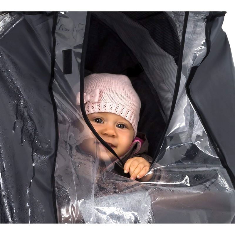 Daca sunteti surprinsi de ploaie, zapada sau vant puternic, puteti sa instalati si sa indepartati rapid protectia de ploaie RainSafe Active cu ajutorul benzilor cu arici si a carligelor de ancorare. În felul acesta, micul tau pasager ramane uscat si protejat.
