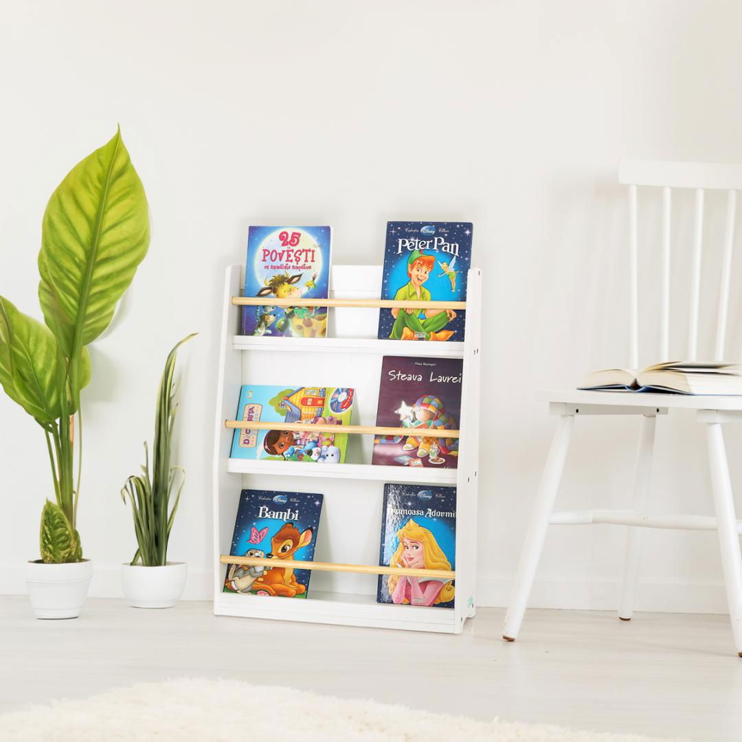 Carti mari, carti mici, carti subtiri sau carti groase, toate isi gasesc locul in cele 3 spatii de depozitare. Pentru ca se monteaza la nivelul podelei, cel mic isi poate alege singur cartea sau jucariile dorite. Varsta recomandata: +2 anin