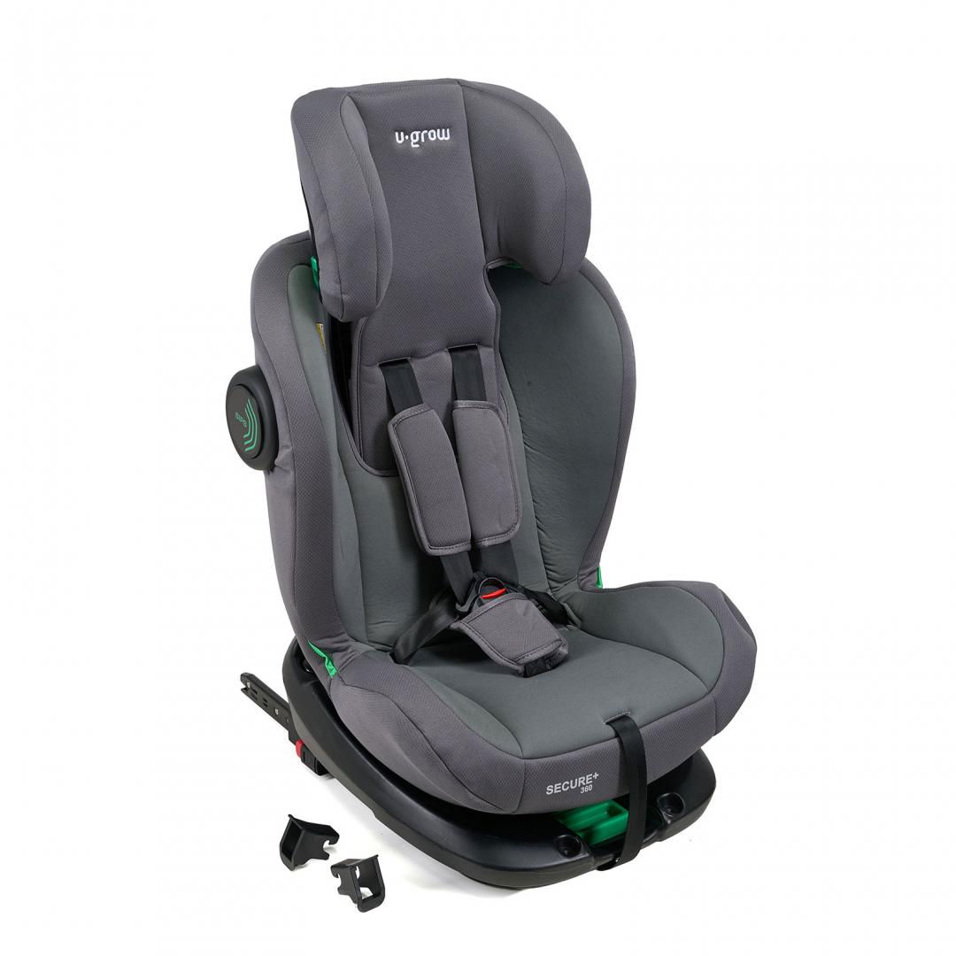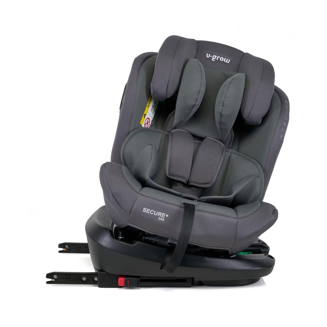 U-Grow Secure+ este un scaun auto pentru copii de la 40 cm pana la 150 cm inaltime, realizat in conformitate cu standardul i-Size. A fost creat pentru siguranță și confort. Copiii pot fi transportați în scaun din primele luni de viață până când nu mai este necesar scaunul, adică pana când ajung la 150 cm înălțime. Scaunul se instalează simplu și rapid folosind sistemul ISOFIX . Scaunul rotativ la 360 de grade asigură accesul confortabil copiilor. Confortul și siguranța celor mai mici copii este asigurată de o inserție confortabilă, detașabilă, cu o pernă-tetieră atașată. Confortul copiilor mai mari este asigurat de tetiera reglabilă a scaunului și de scaunul rabatabil. Scaunul are 4 grade de inclinare pe spate, iar tetiera se poate regla in 10 pozitii pe inaltime. Întregul scaun este finisat cu o țesătură din poliester moale și plăcută la atingere, ușor de intretinut.n