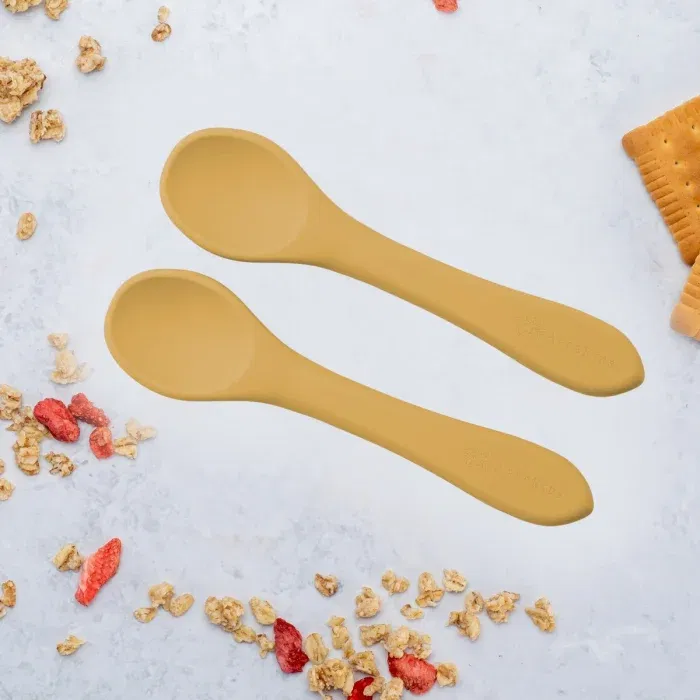 Set lingurițe silicon pentru bebeluși 6 luni+, Honey, fără BPA. Design ergonomic, textură moale, perfect pentru autodiversificare și siguranța gingiilor.