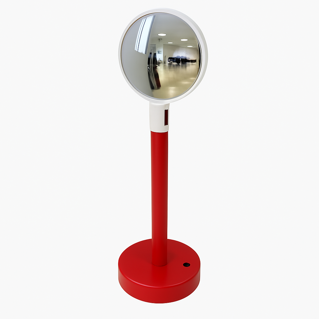 Acest stâlp de delimitare cu oglindă convexă inclusă oferă vizibilitate extinsă, control mai bun asupra circulației și siguranță sporită pentru șoferi, pietoni sau angajați.