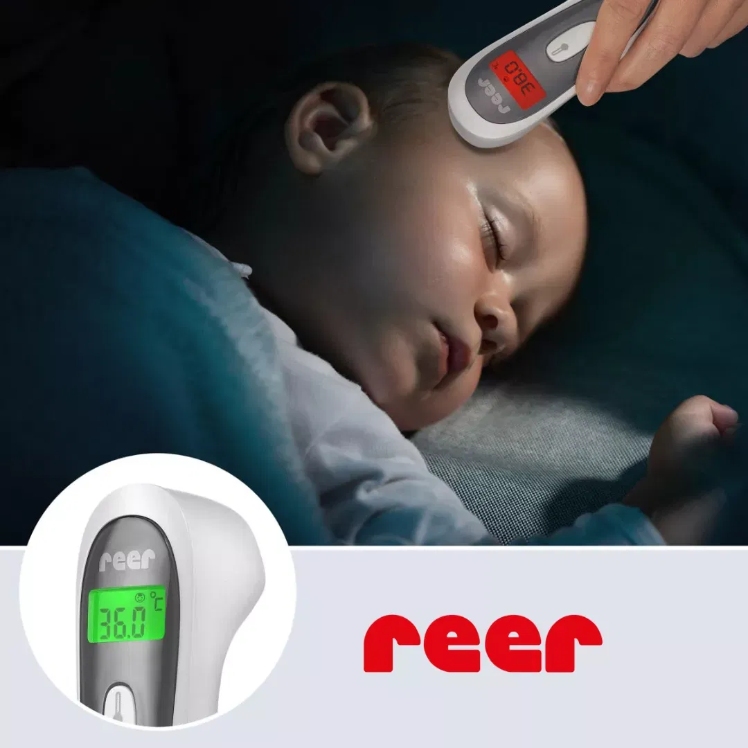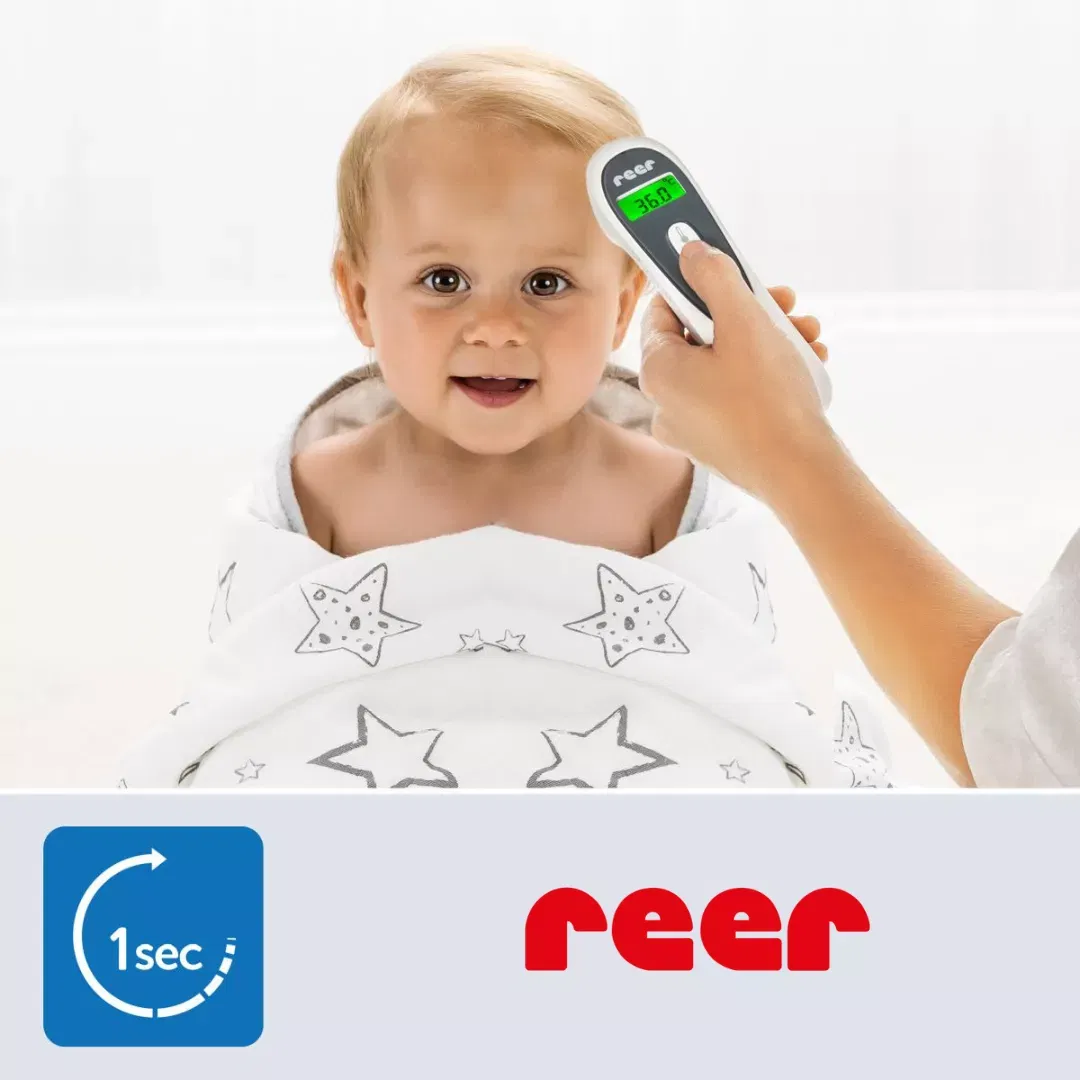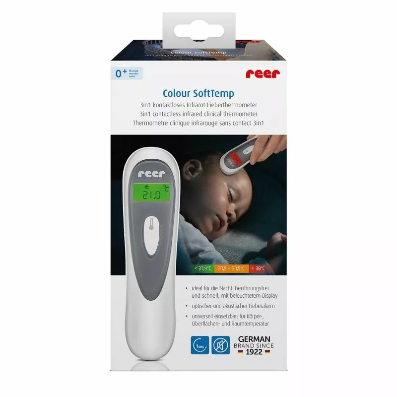 Termometrul Reer SoftTemp este o alternativa rapida si necomplicata pentru o masurare initiala a febrei: datorita tehnologiei in infrarosu, febra poate fi masurata fara contact si fara durere in doar o secunda.