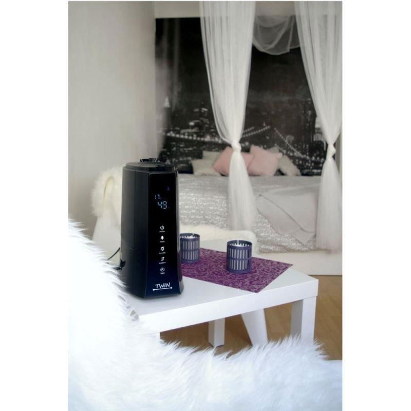 Umidificatoarele cu ultrasunete TWIN improspateaza si imbunatatesc calitatea aerului cu ajutorul celor 3 functii – umidificare, purificare (prin imbogatirea cu ioni) si aromaterapie (prin folosirea de uleiuri aromatizate). Filtrul ceramic incorporat are rol antibacterian si de indepartare a mineralelor continute de apa, prevenind dispersia lor in aer si inhalarea. Eficienta deosebita a umidificatorului se datoreaza tehnologiei cu ultrasunete ce reduce consumul si creste eficienta umidificarii.