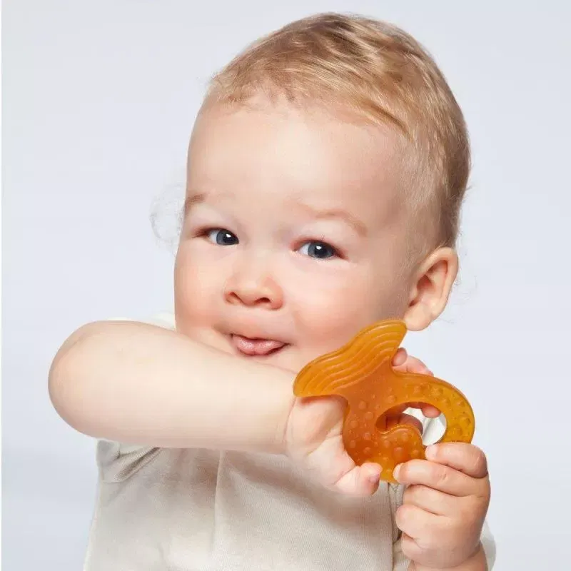 Unii copii pot avea reactii alergice la cauciuc natural. Daca observati orice reactie alergica in timpul folosirii inelului de dentitie, incetati sa-l mai folositi!