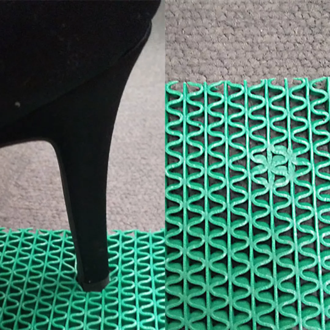 Este covoras antialunecare extrem de durabil, confectionat dintr-un cauciuc de calitate superioara, capabil sa reziste utilizarii intense.