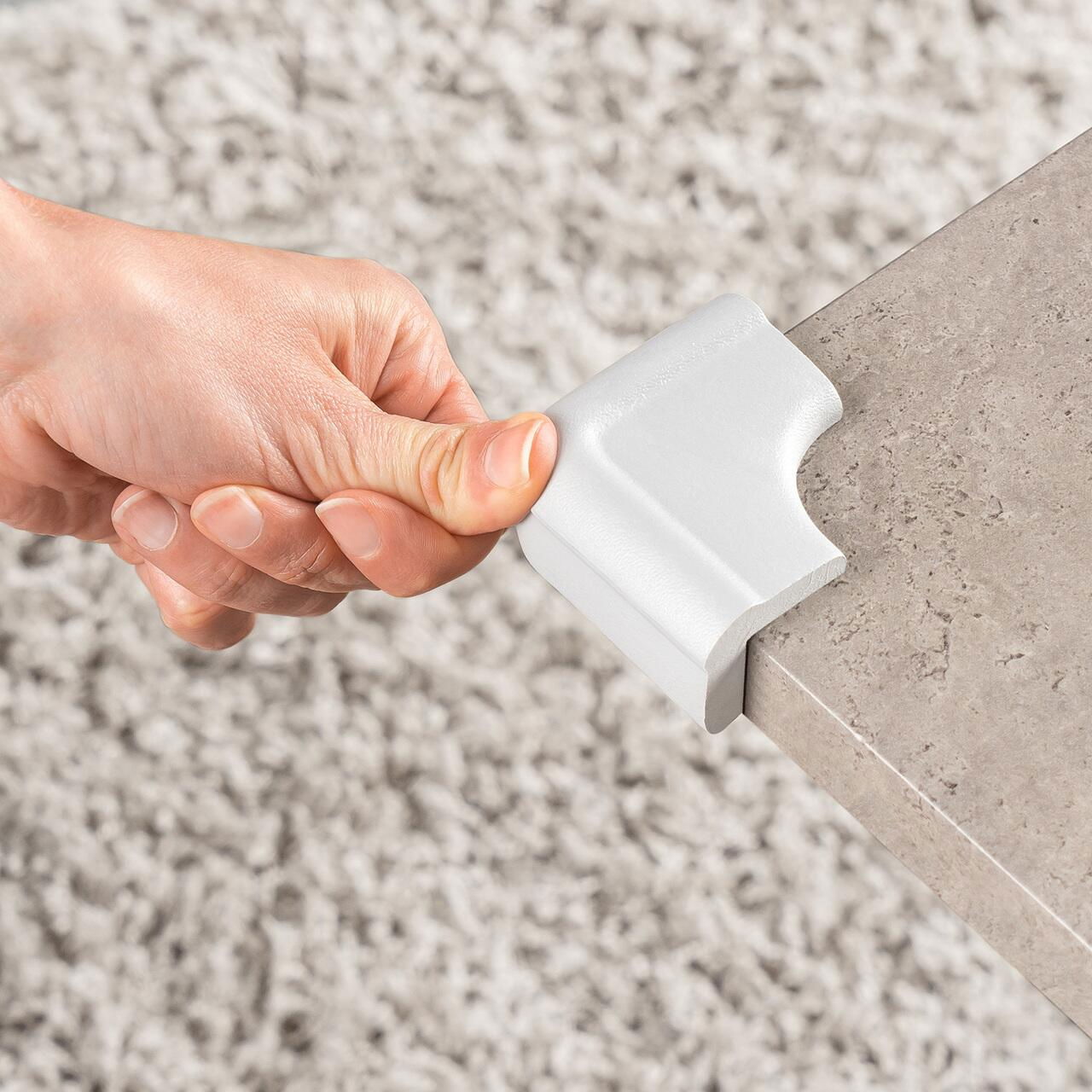 Muchiile si colturile mobilierului prezinta un risc ridicat de ranire, atunci cand copiii fac primii pasi si incep sa se ridice. Capul si ochii copilului tau sunt expuse in mod special la colturi si au nevoie de protectie. Prin urmare, alege sa asiguri usor colturile si muchiile blaturilor mobilierului sau ale pervazelor de la ferestre cu ajutorul protectiilor din poliuretan de la Reer. Pot fi lipite cu usurinta pe aproape orice muchii si colturi periculoase ale mobilierului.