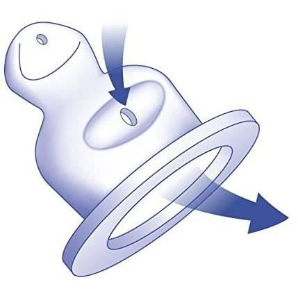 • Tetina anatomica, de forma ortodontica, din latex natural, cu aerisire anti-colici ce impiedica inghitirea aerului si asigura un flux constant de lichid,