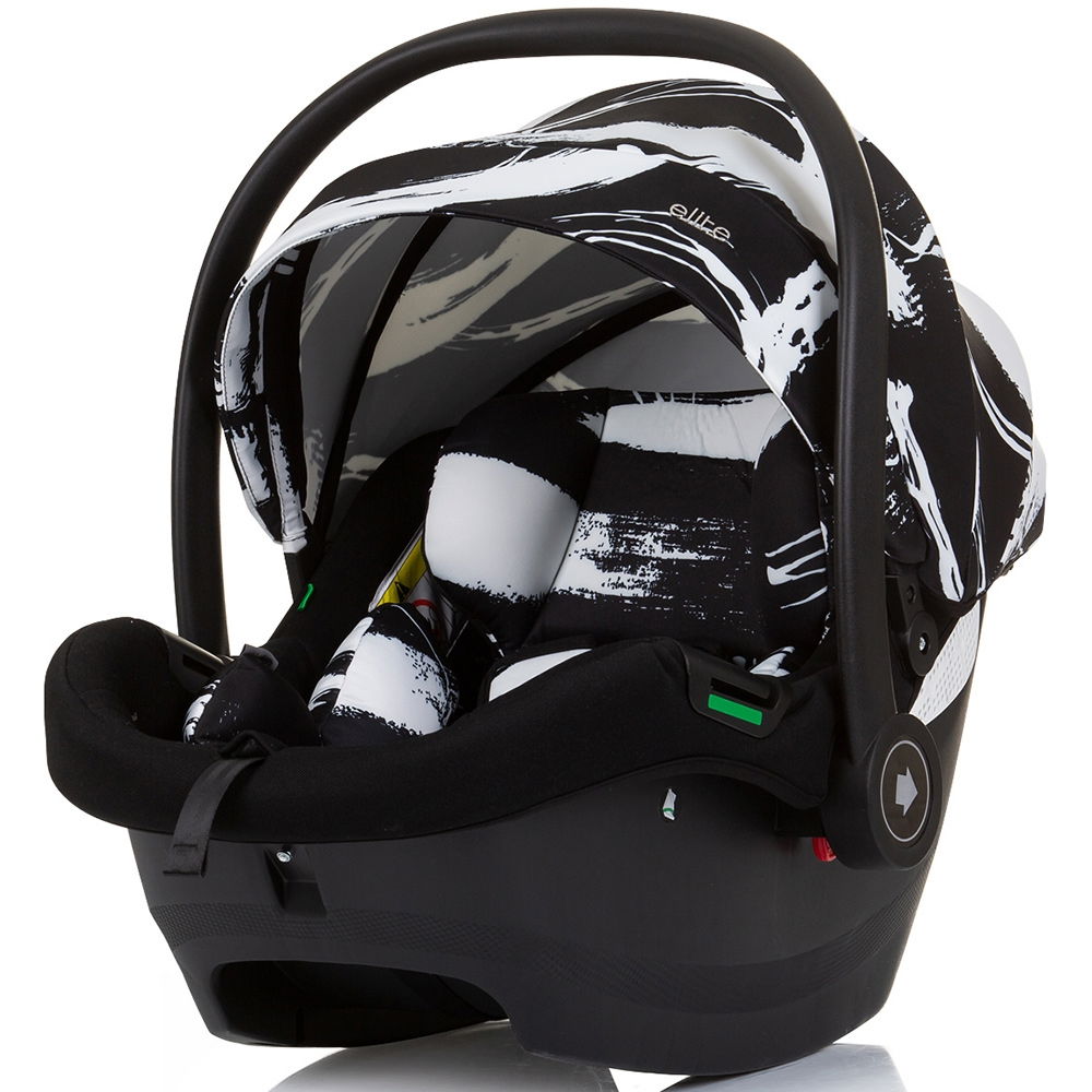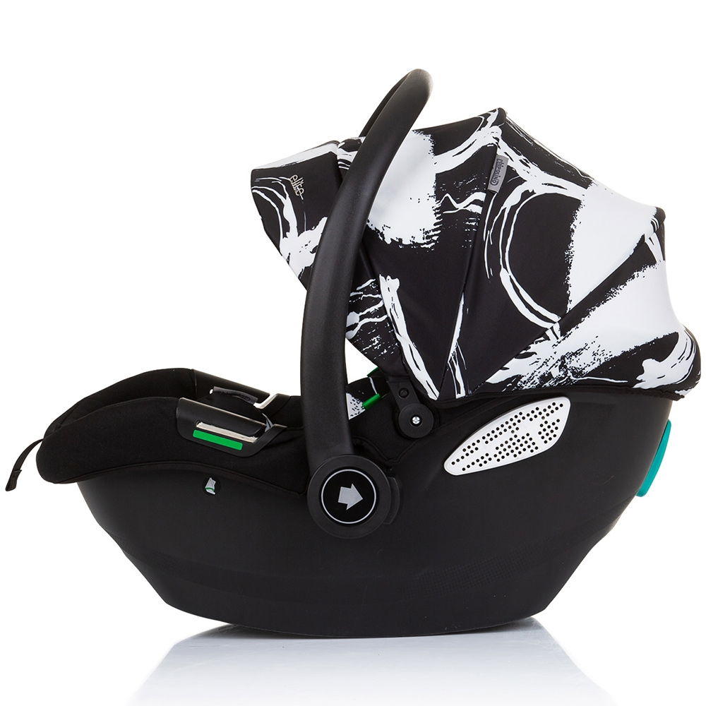 Scaunul auto are copertina reglabila si o baza cu sistem de leganare