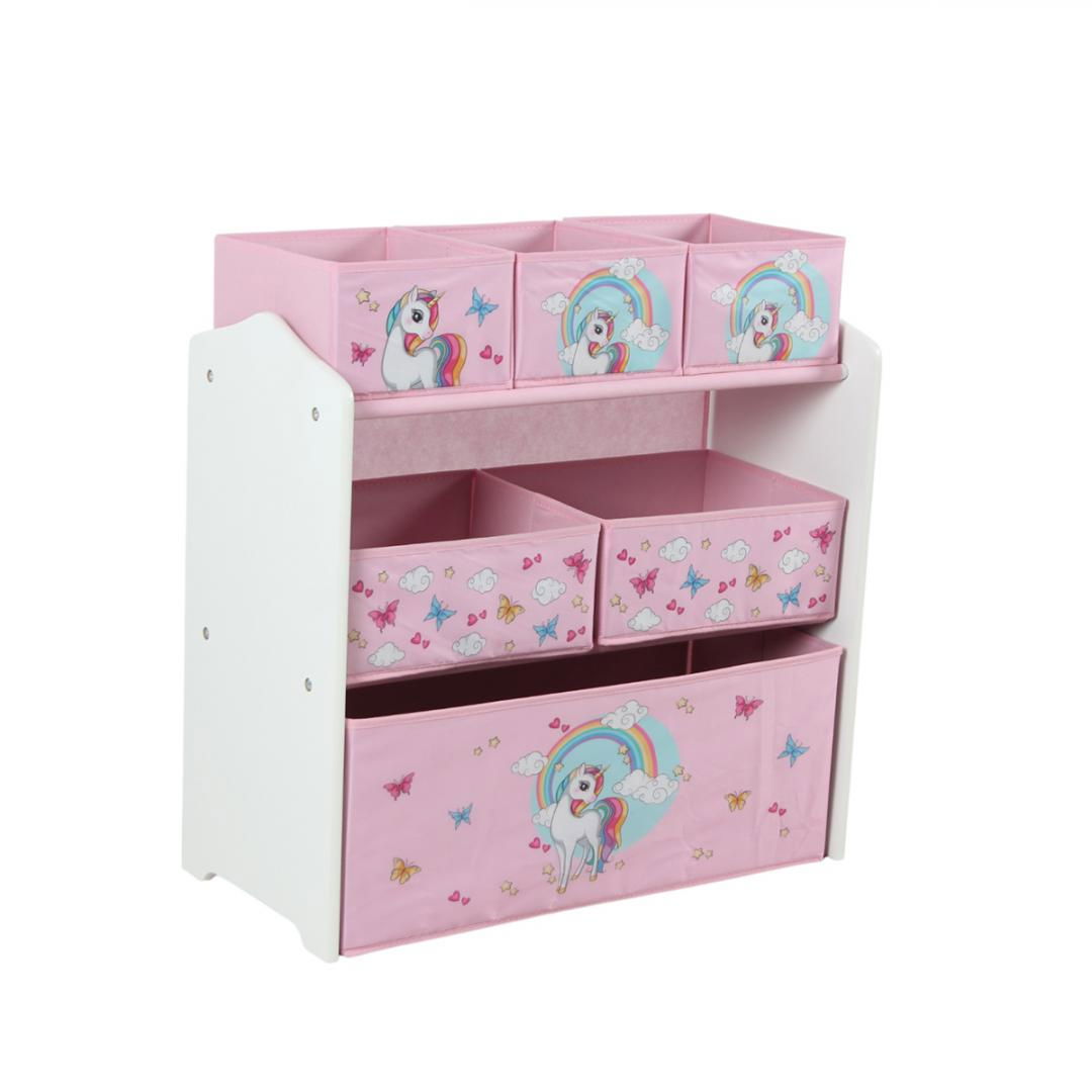 Acest dulap de depozitare este ideal pentru organizarea jucăriilor, cărților și accesoriilor copiilor. Conceput pentru a oferi acces ușor și a menține ordinea în cameră, dulapul include 6 cutii de depozitare de dimensiuni diferite: