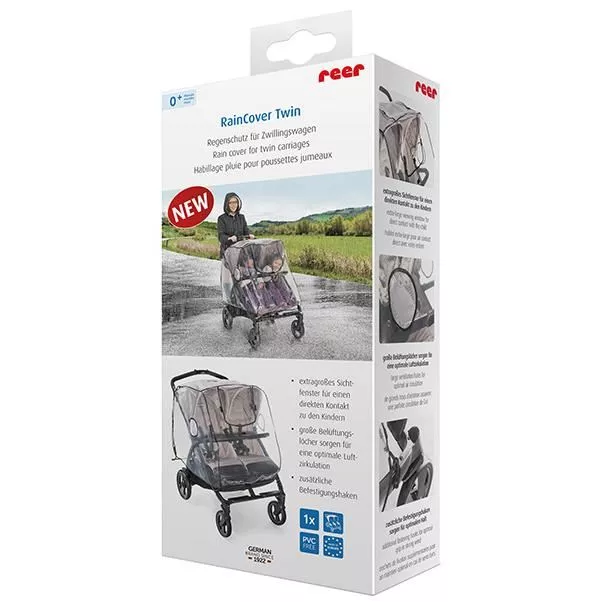 REER Husa de ploaie pentru carucior de gemeni, transparenta, Reer
