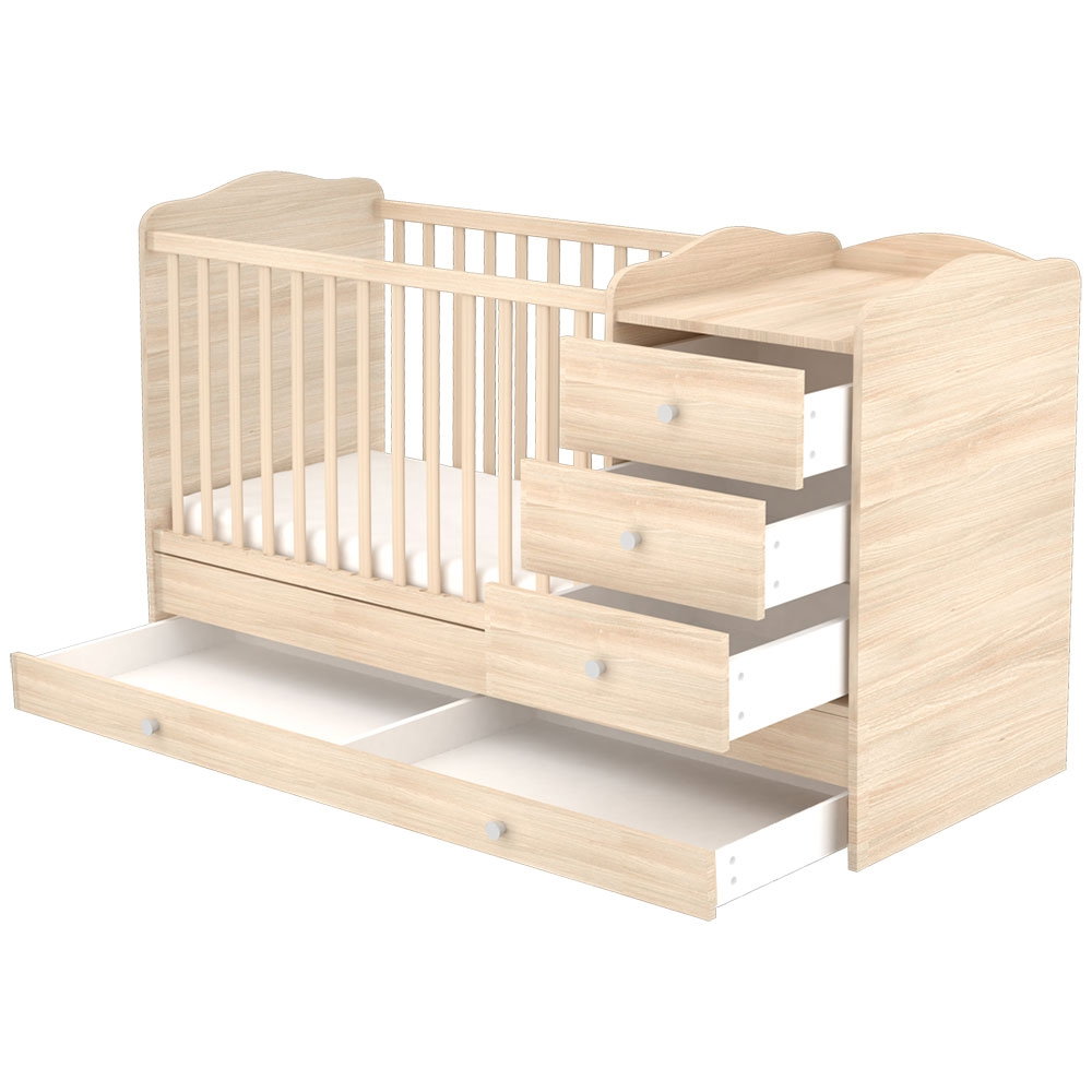 Detalii Patut copii transformabil din lemn cu 4 sertare Hubners Eva Kombi 120x60 cm