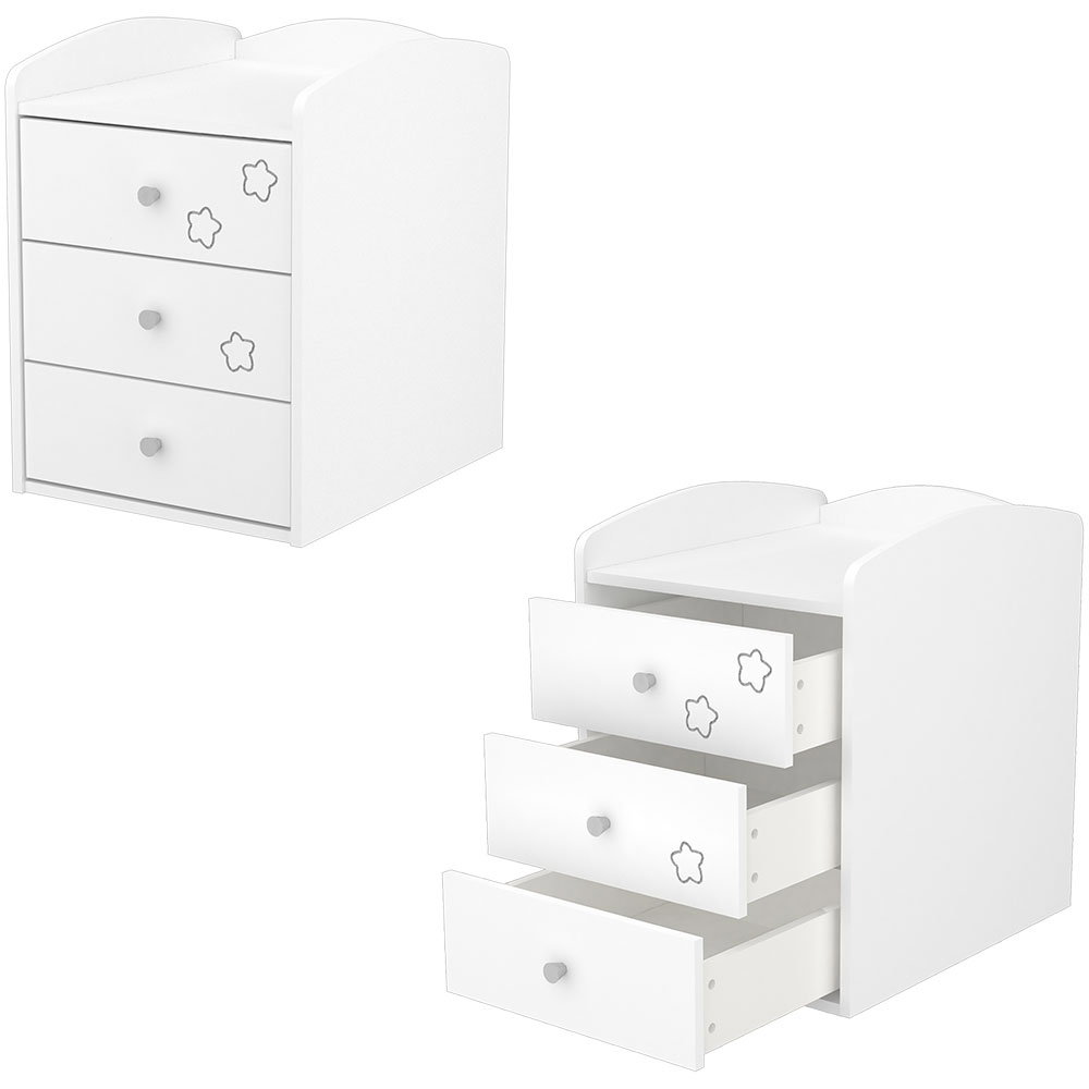 - Dupa indepartarea grilajelor laterale si a comodei de infasat, patul poate fi transformat intr-un pat de tineret si o noptiera