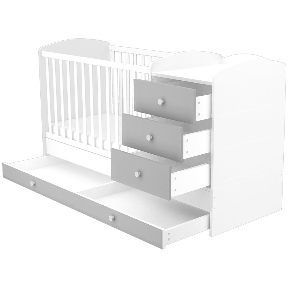 Patut copii transformabil din lemn cu 4 sertare Hubners Patrik Kombi 120x60 cm alb grafit